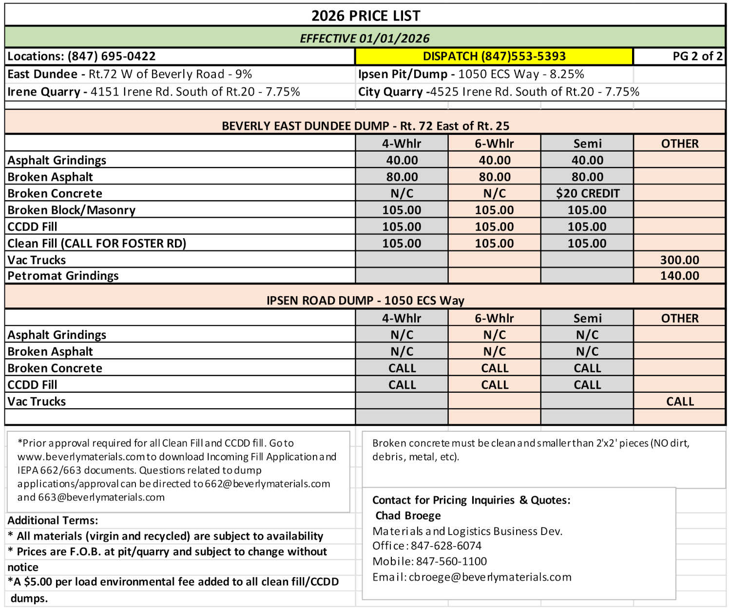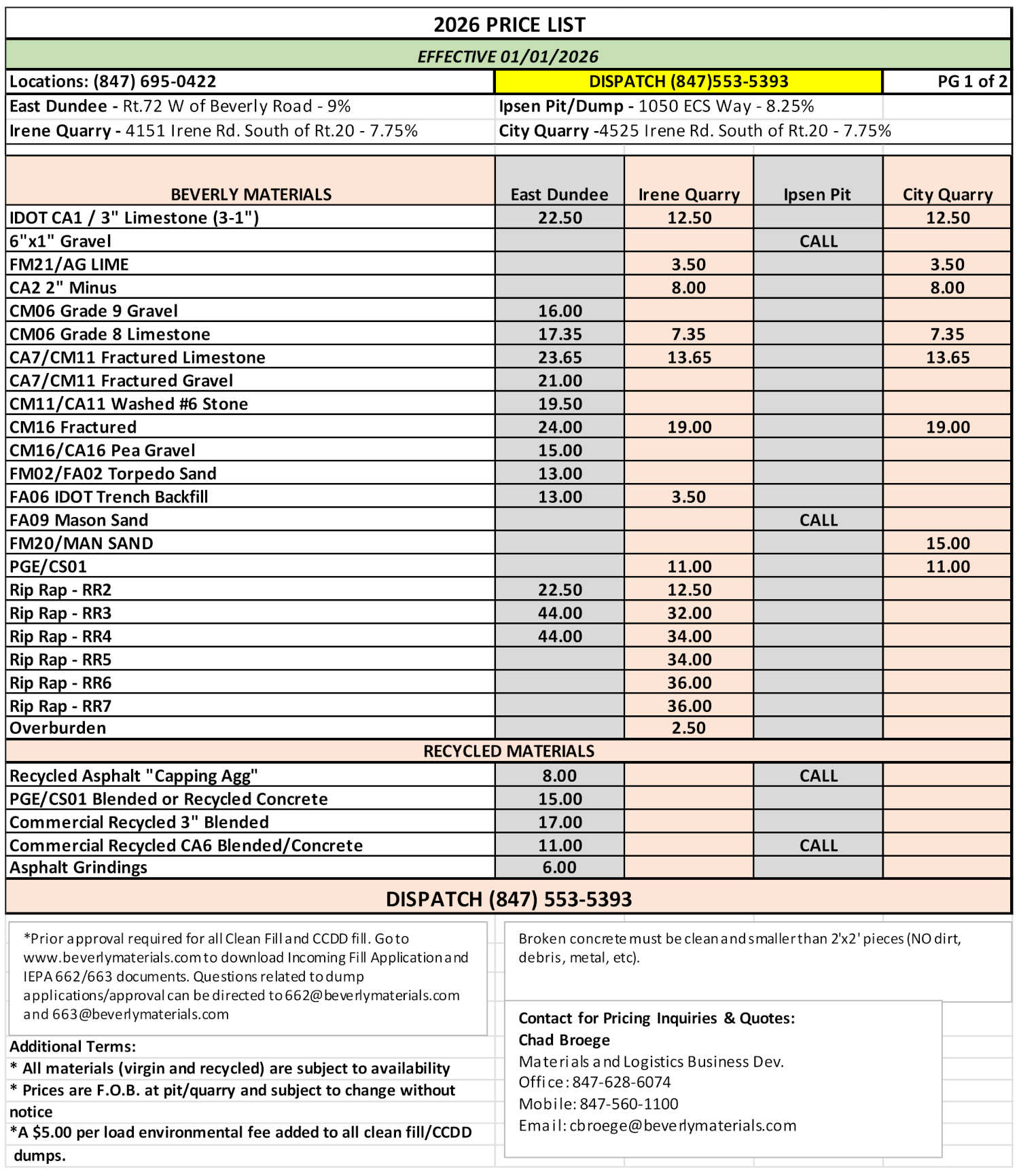 • Prices are F.O.B. at pit/quarry and subject to change without notice